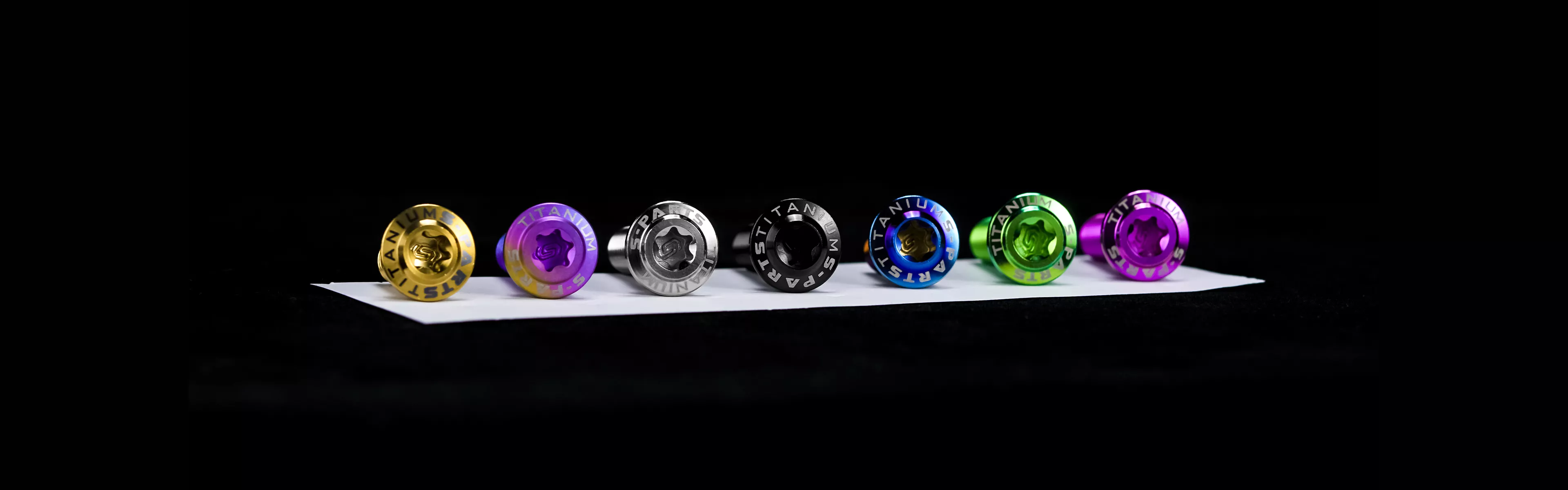 S-PARTS旗下产品以性能、色彩、外观设计的优势区别与同类型产品。九种常见色:金色、彩色、钛色、黑色、蓝色、绿色、紫色、糖果色、靛青色与多款色彩丰富的阳极图案,主要用到2个工艺:PVD镀膜和钛合金的阳极氧化。其中金色,黑色,蓝色,为PVD镀膜,(通过真空的环境,融化靶材,将其溅射到零件表面产生镀膜),绿色,紫色,糖果色,靛青色为阳极氧化(通过电压,在酸性溶液的媒介下,跟钛金属表面产生氧化反应产生颜色,不同的电压会产生不同的颜色),可根据用户需求任意选择搭配。
